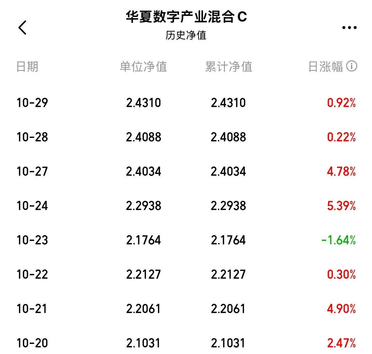 近8天7天正收益,昨天收益0.92%突破1年新高,$华夏数字产业混合C$这收益也