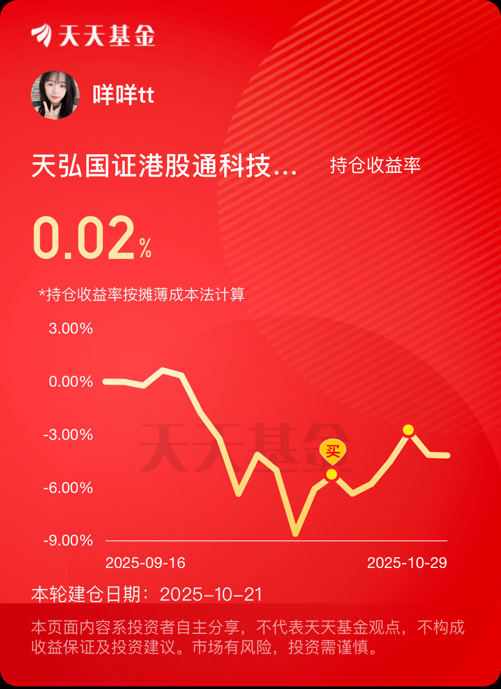 我加5000元 $天弘国证港股通科技指数C(OTCFUND|024886)$
