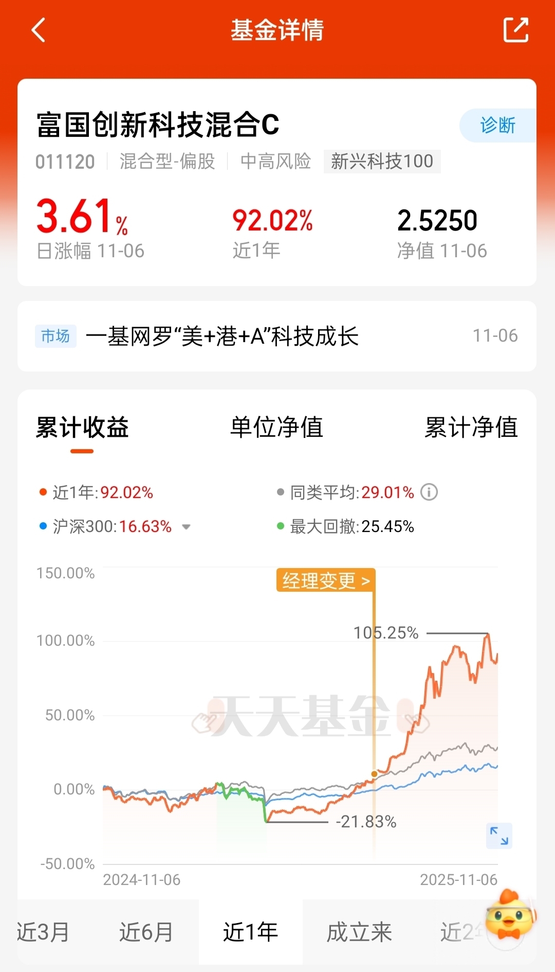 这阵子加仓了富国创新科技C,持仓新易盛、中际旭创这些AI算力核心股,近6个月回本了119%,跑赢大多数同类,53亿大盘子也稳得住。