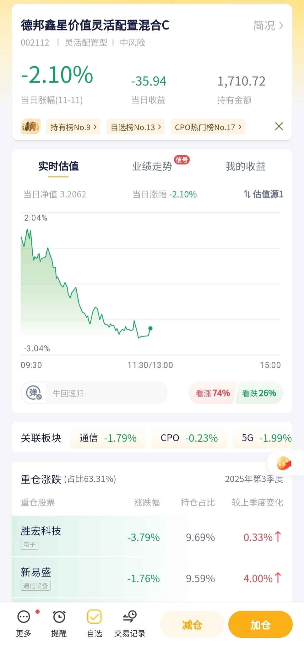 德邦鑫星价值灵活配置混合今日预估跌幅-2.10%!
