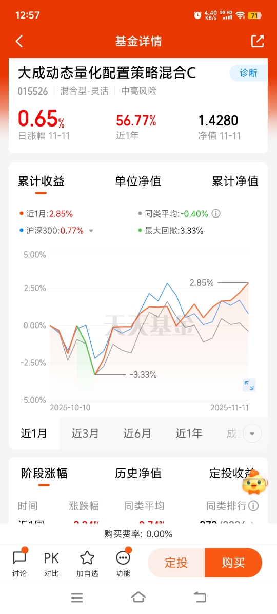 半导体波动也比较明显,我更看好小微盘主题的基金。大成动态量化这个走势很像是小微盘的走势,已经连续涨了五天。