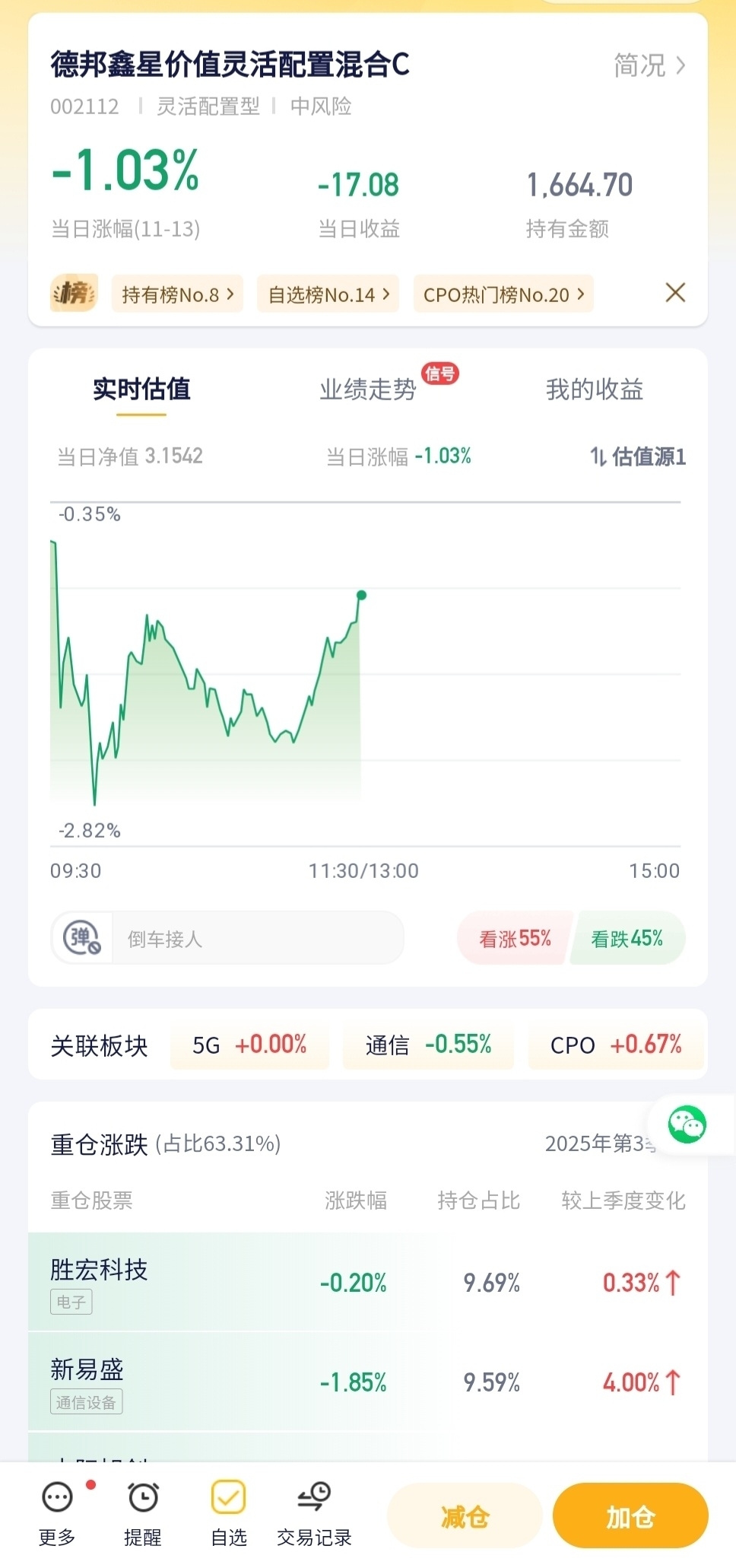 - 德邦鑫星价值灵活配置混合今日预估跌幅1.03%!