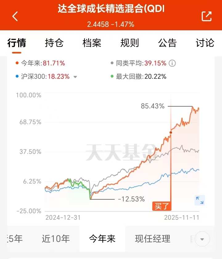 $易方达全球成长精选混合(QDII)人民币C(OTCFUND|012922)$还不错,聚焦全球科技龙头分散配置。今年以来业绩涨幅81.71% 跑赢同类,调整期回撤表现亮眼,基金经理平衡成长与风控,收益扎实不折腾,长期持有还是挺放心的。