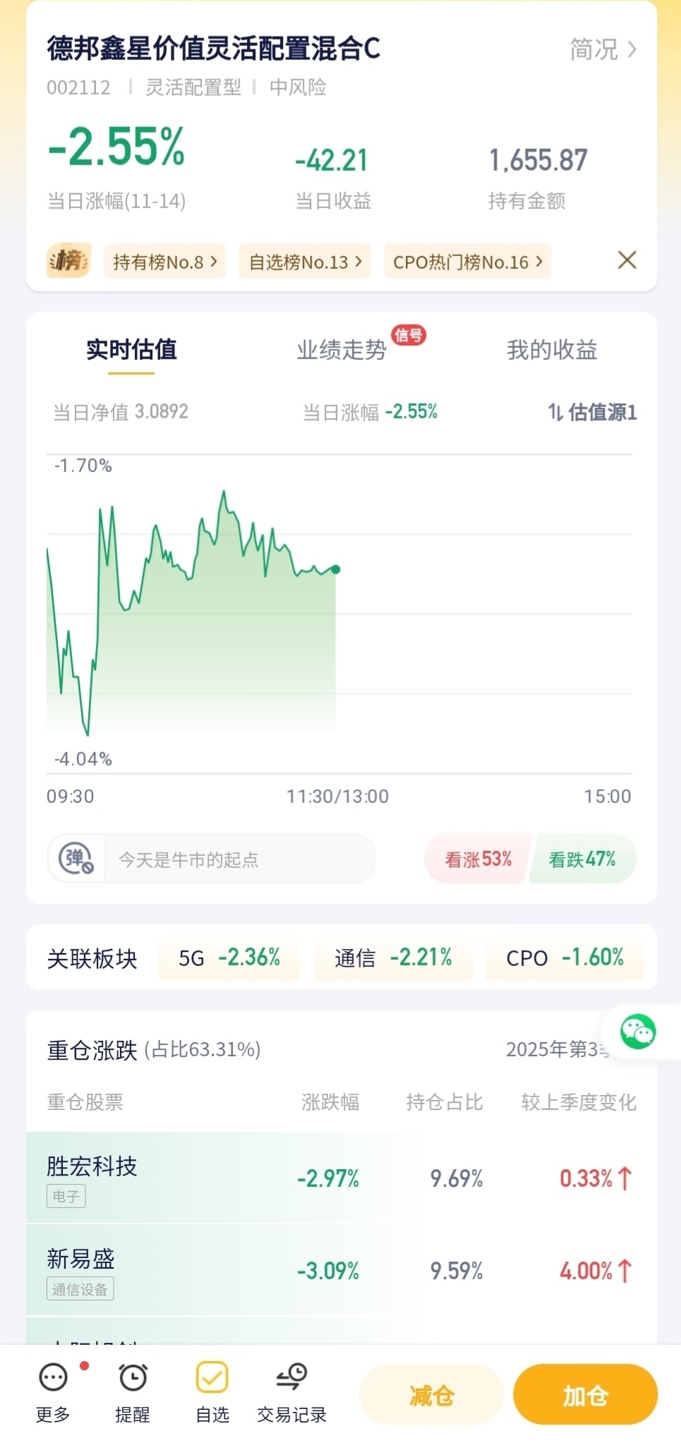 - 德邦鑫星价值灵活配置混合今日预估跌幅-2.55%!