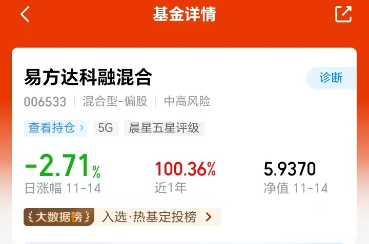 前些天发现的$易方达科融混合(OTCFUND|006533)$和$易方达科讯混合(OTCFUND|110029)$观察几天了,感觉还不错,前者 A+H 股布局科技、新能源,近一年涨100.36%业绩表现不错;后者专注 A 股,还受机构青睐。今天新能源爆发也能跟着受益,回撤又小,我打算趁机加仓锁长期收益。