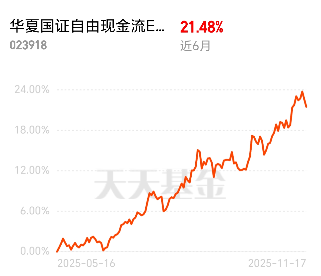 昨天入手的$华夏国证自由现金流ETF发起式联接C$推荐大家继续低吸操作哈,近6个月收益21.48%,这里只投有闲钱的公司,分红好股息都高,场内近 20 个交易日中有 19 个交易日获得资金净流入,合计净流入达15.73 亿元,而且管理费一年仅0.15%,同类产品中最低,性价比不错的