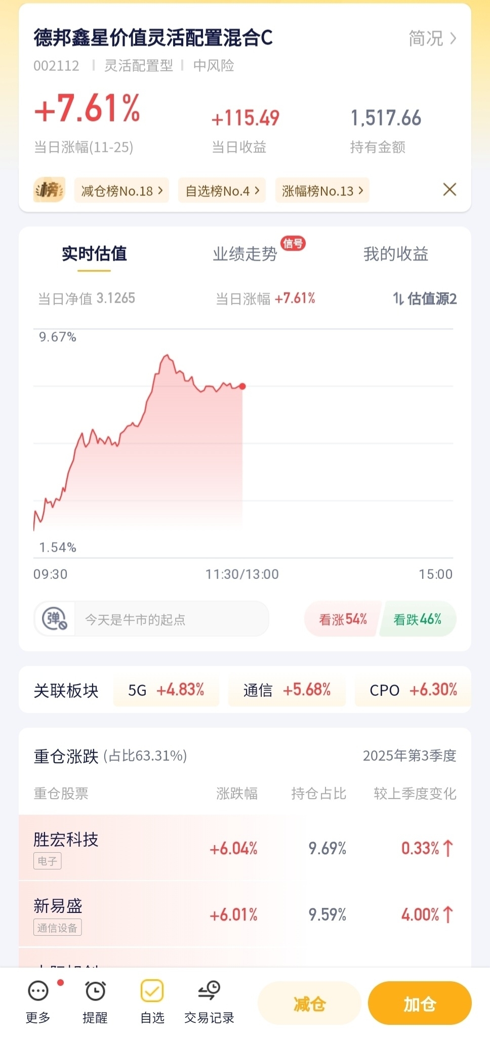 德邦鑫星价值灵活配置混合…今日预估涨幅+7.61%!