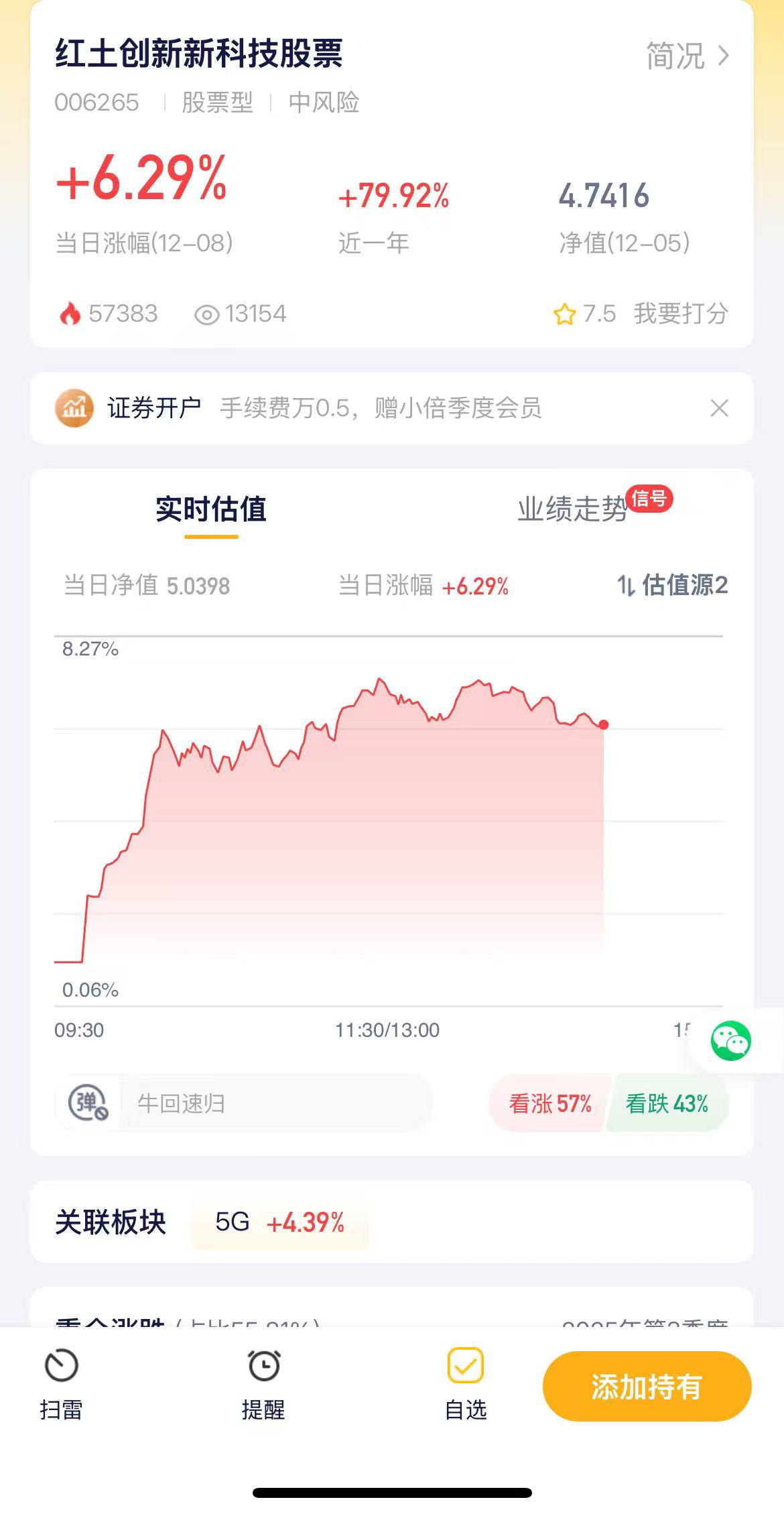 今天CPO概念股集体大涨,看估值$红土创新新科技股票C$涨了6个多点。这只基金主