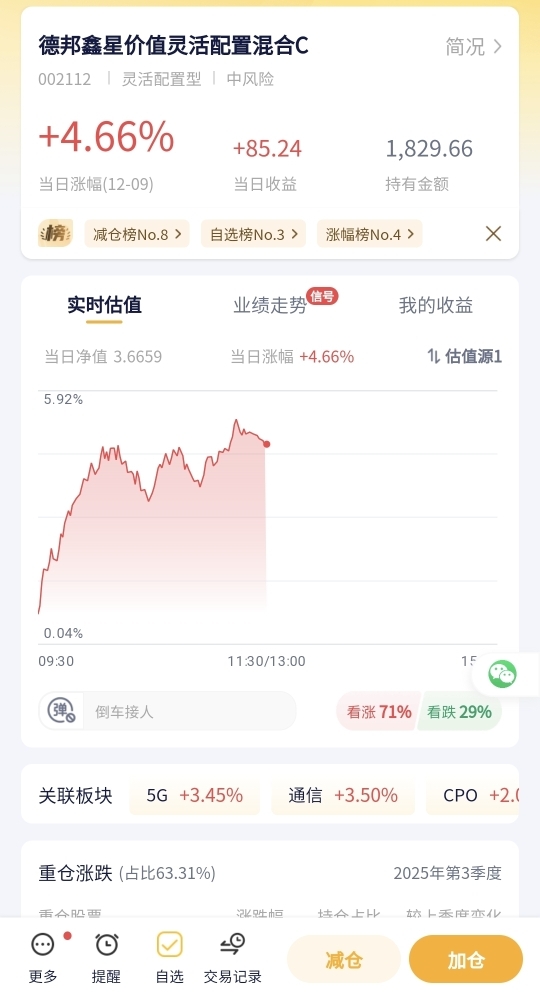 德邦鑫星价值灵活配置今日预估涨幅4.66%!