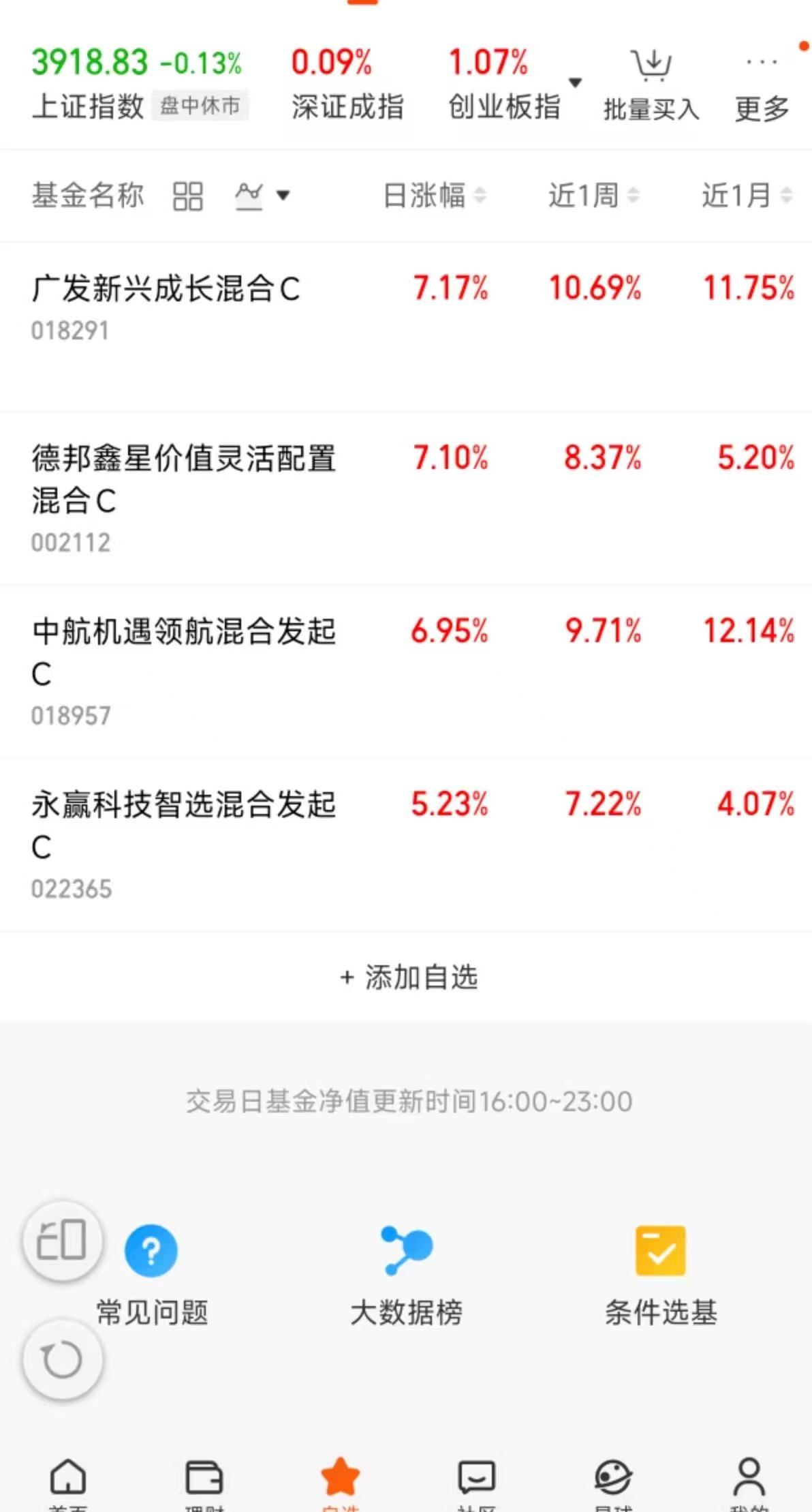 $广发新兴成长混合C$广发新兴成长混合C昨天涨幅7.2%,今天又大涨,连续跑赢同