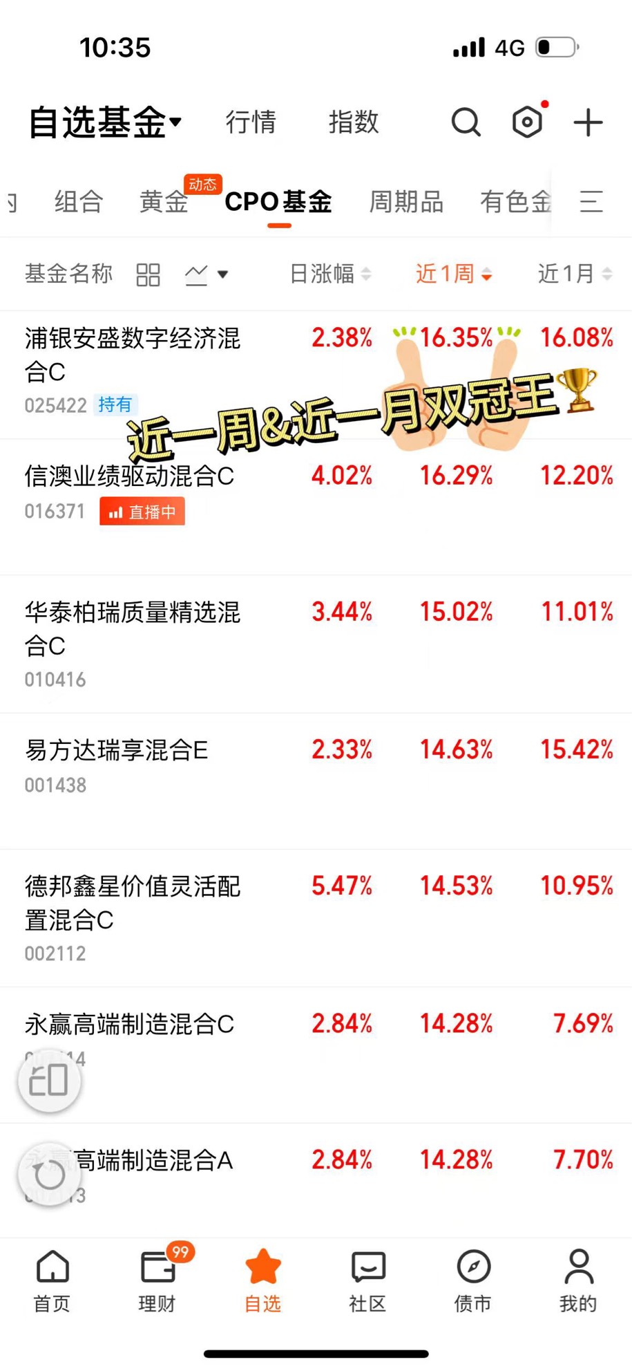 CPO新晋卷王$浦银安盛数字经济混合C$昨天继续涨2.38%,排在后面的还有信澳