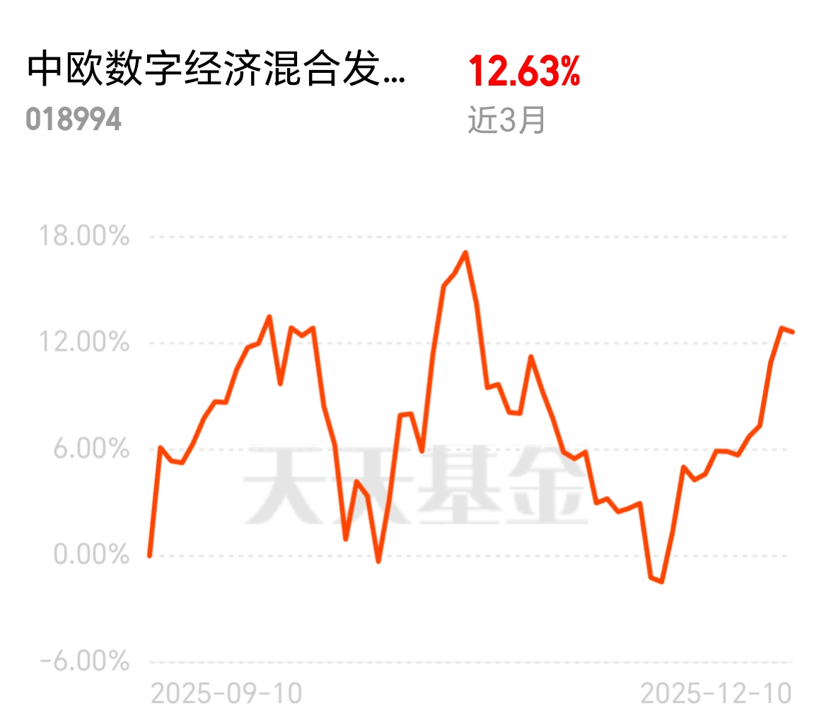 数字中国建设提速,AI、半导体等核心领域获资源倾斜,产业发展动力十足。中欧数字经济混合发起 C 近 3 个月 12.63%,紧跟产业升级步伐,短期长期都有肉吃。$中欧数字经济混合发起C$