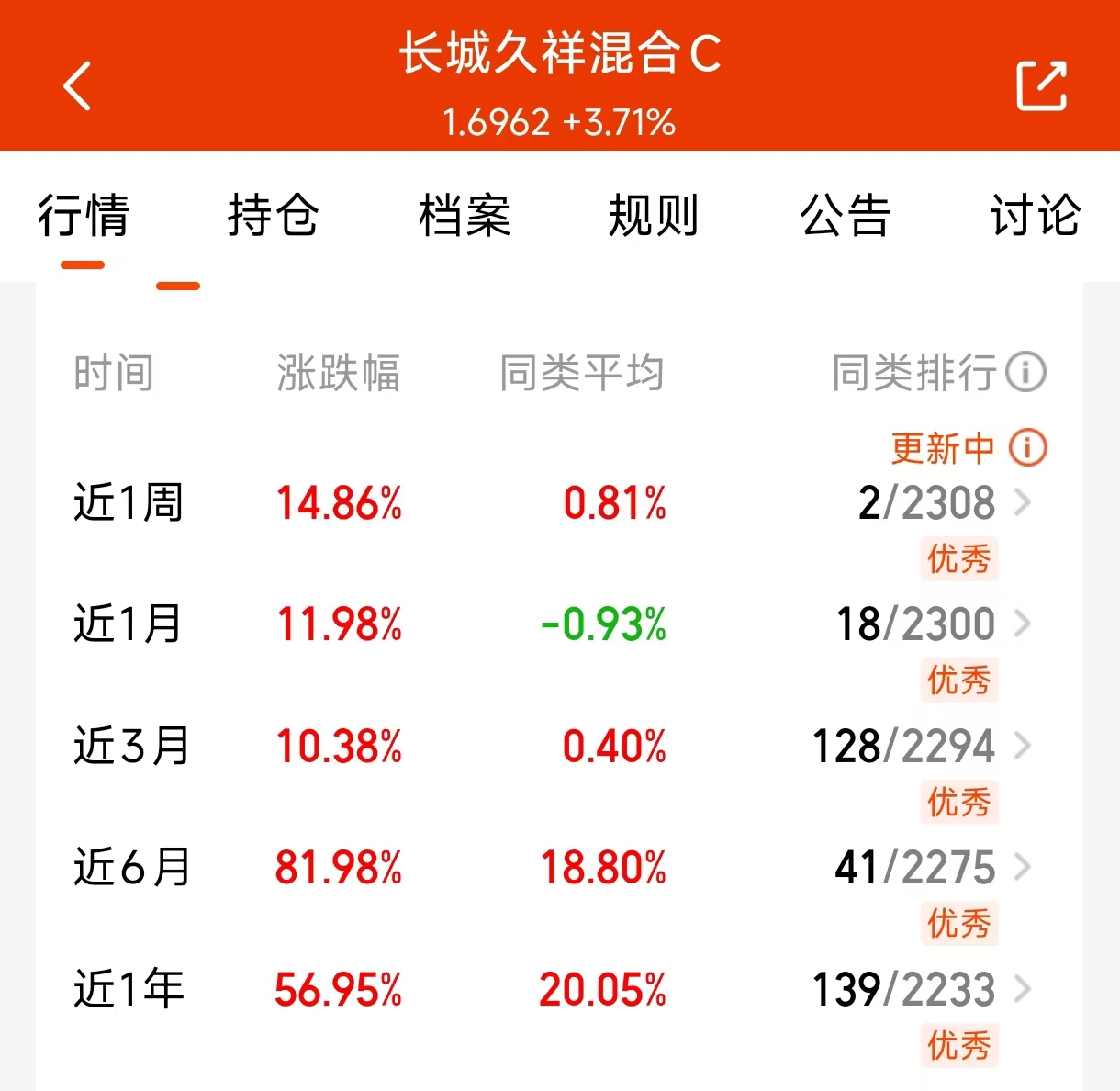对比了下几个算力基的近期表现,发现长城久祥混合C(017462)的弹性是真的足。同样是CPO概念,它近一周的涨幅比同类高出不少,这种超额收益在板块行情中特别珍贵。我觉得主要原因在于它规模小,调仓灵活,能快速跟上市场变化。那些百亿规模的基金,就算看好也不敢大调仓,只能看着它一路领跑。#摩尔线程市值突破4000亿!估值逻辑是啥?#