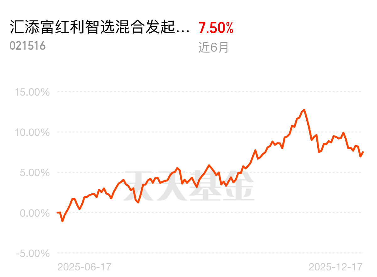 市场缺乏明确主线,震荡反复成常态,红利资产韧性凸显。$汇添富红利智选混合发起式C$ 近 6 个月 7.50%,契合哑铃策略配置逻辑,高股息属性帮你穿越波动。