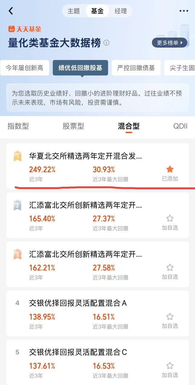 北交所布局的都是专精特新企业,这里近三年收益249%+,更是跑赢北证50指数200%+,超额收益显著,开放以来连续霸榜绩优低回撤股基榜单第1,$华夏北交所精选两年定开混合发起式$错过今天还要等2年才能再开放呢