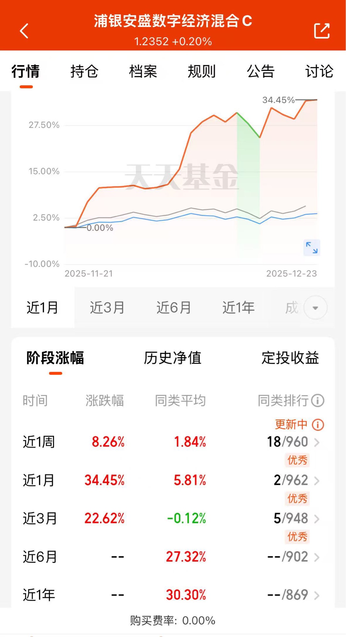 $浦银安盛数字经济混合C$近一个月,近三月都是TOP,新人就是猛,选股很精准,就