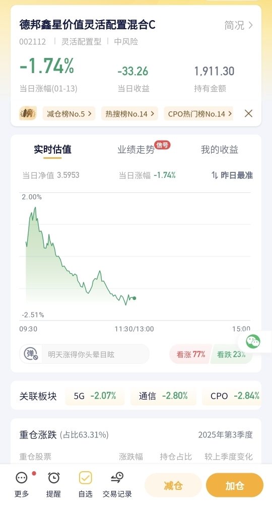 德邦鑫星价值灵活配置混合今日预估跌幅1.74%!