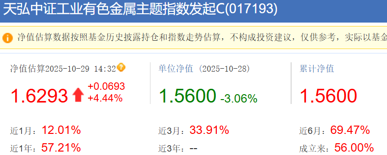 $天弘中证工业有色金属主题指数发起C$ 抄到底了,盘中涨幅超过4%!我左侧分批低吸的还是有效,投有色的逻辑,是能源、工业金属的供需缺口持续扩大,供不应求,铜、铝等金属价格不断攀升;此外,稀土作科技战略新兴产业的核心资源,需求放量以及出口管制也不断推动其价格走高;再就是美联储降息周期下,宽松预期有助于有色等大宗商品价格上涨。马上就要进行10月议息了,若再降息或继续提振有色板块做多情绪,回调可以再继续跟上一些。