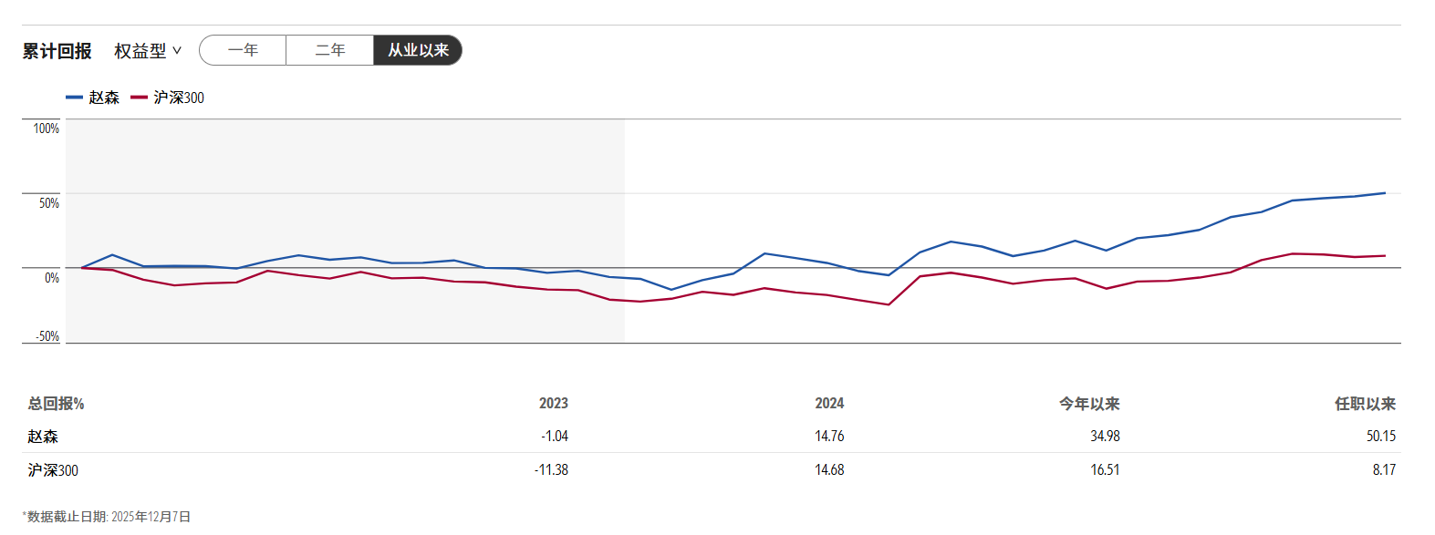 虽然接任时面临熊市,但赵森大部分时间维持住了正收益,并且在反弹中表现出色,任职以来收益率达50.15%,大幅跑赢同期沪深300指数8.17%的涨幅。