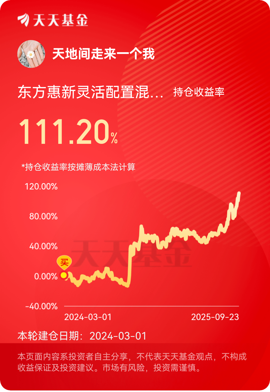 收益率翻倍了,买对赛道根本不愁肉吃。$东方惠新灵活配置混合C$ #晒收益#