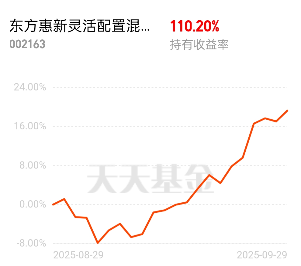 今天行情不错。看样子可以吃肉了,不得不说跟着科技真的香,看样子下半年大概是慢牛行情了$东方惠新灵活配置混合C$