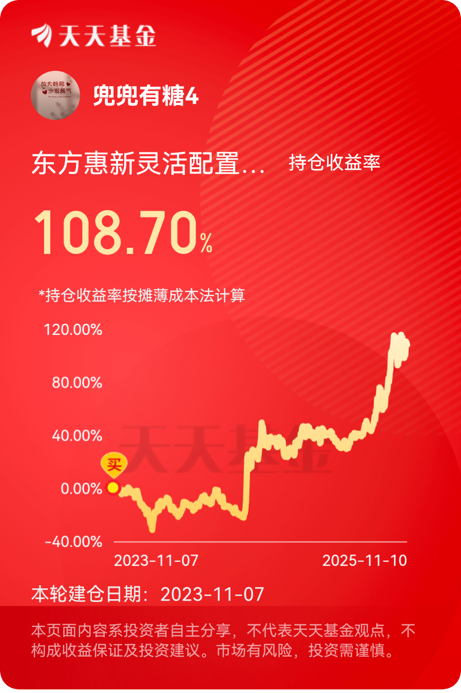 $东方惠新灵活配置混合C$真的是服气了,昨天赚的钱进口袋还没有热乎,今天就要给回