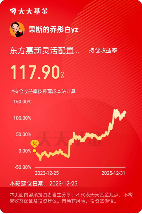 科技板块今日大涨完全契合预判,年末资金回笼的结构特征下,科技方向的走强是必然趋势,持仓坚定持有,紧跟主线即可把握收益。$东方惠新灵活配置混合C$ #晒收益#