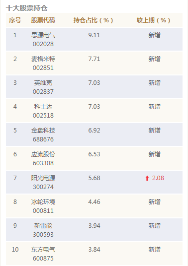 当前持仓亮点: