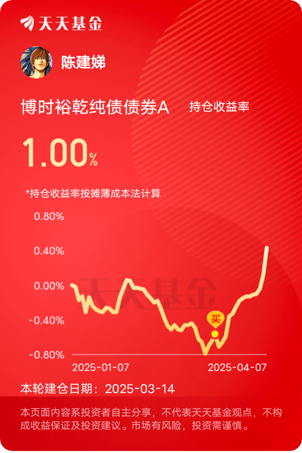 关税一搅局,股市应声而变,尽管今天行情有所稳企,但还得是债基安心,昨天安稳31蛋,就喜欢这种安稳的幸福!$博时裕乾纯债债券A$ #晒收益#