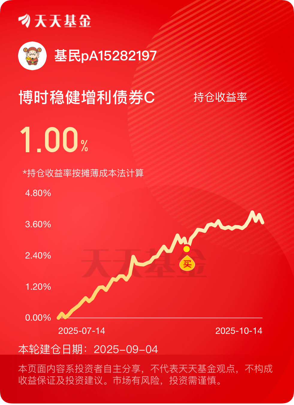 裕乾作为底仓资产很可靠。$博时稳健增利债券C$ 则因权益增强,三个月来收益突出,逢低我正好捡点便宜的。