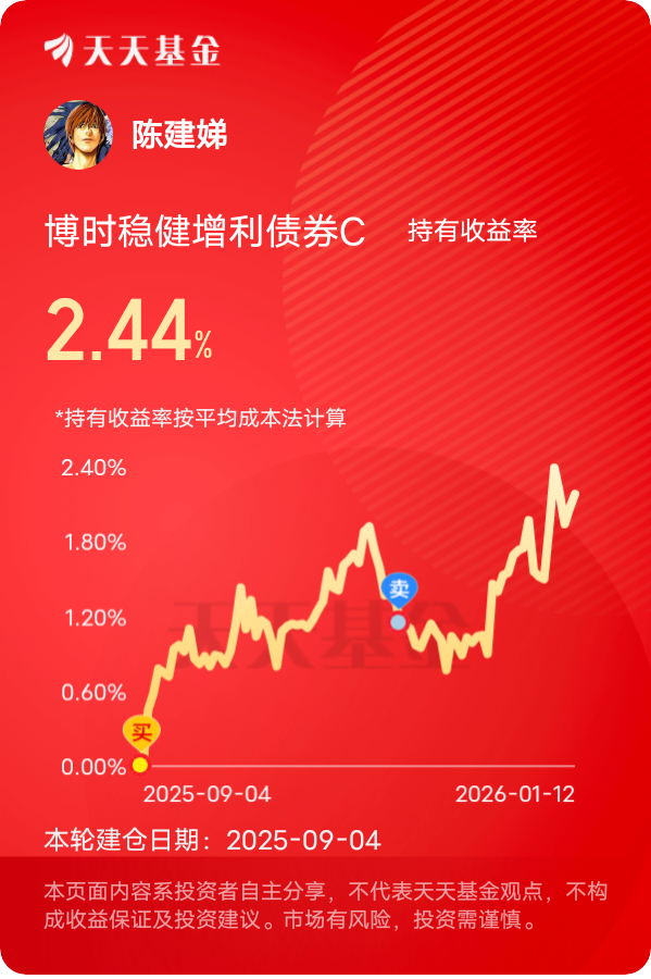 行情一好就连阳,裕乾继续稳定输出。$博时稳健增利债券C$权益仓位的世纪华通、铜陵