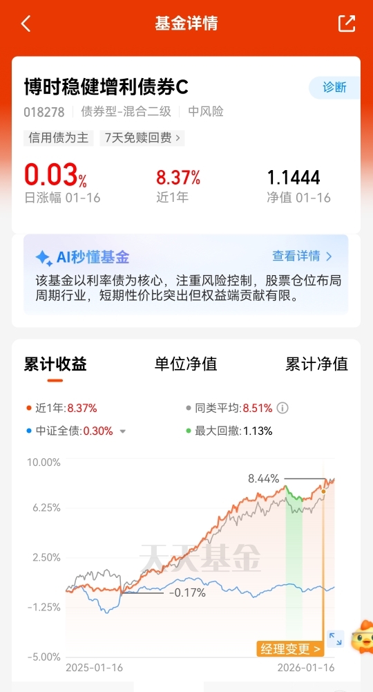 行情不错,裕乾2个,$博时稳健增利债券C$3个,都挺稳。眼下A股走强,债市这边暖