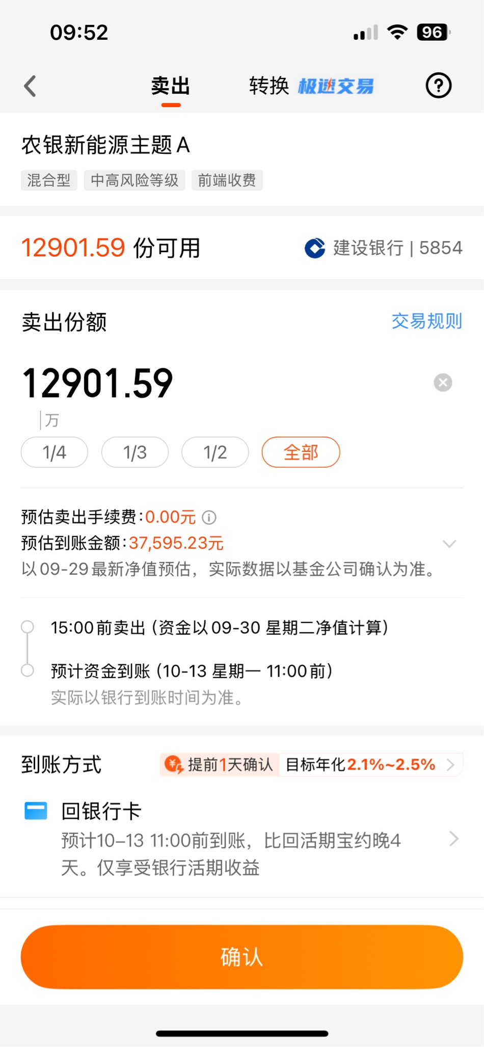 $农银新能源主题A$3年零7个月,终于回本了,马上就赎回