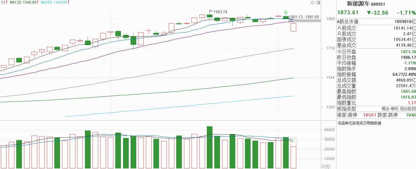 新能源车:上周还在5天线撑着,今早直接砸穿!5号大阳线是支撑?