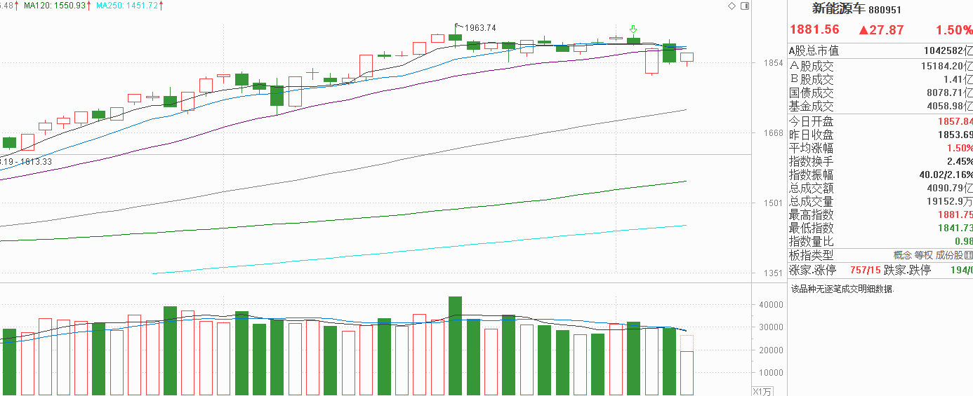 新能源车:20天线成阻力,9月大阳线支撑被破?四天震荡定方向