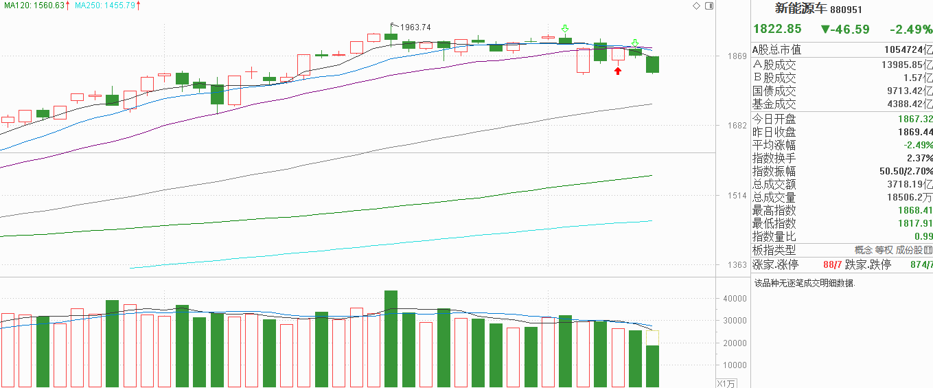 新能源车:20天线失守5天线拐头向下,有利好都带不动?抛压山大
