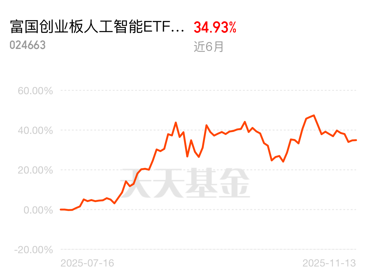 这阵子调仓时除了农银新能源,也配了些富国创业板人工智能ETF联接CAI板块这季度净利润猛增58%,近6个月涨了35%,跑赢大多数同类,估值还处低位。$富国创业板人工智能ETF发起式联接C$