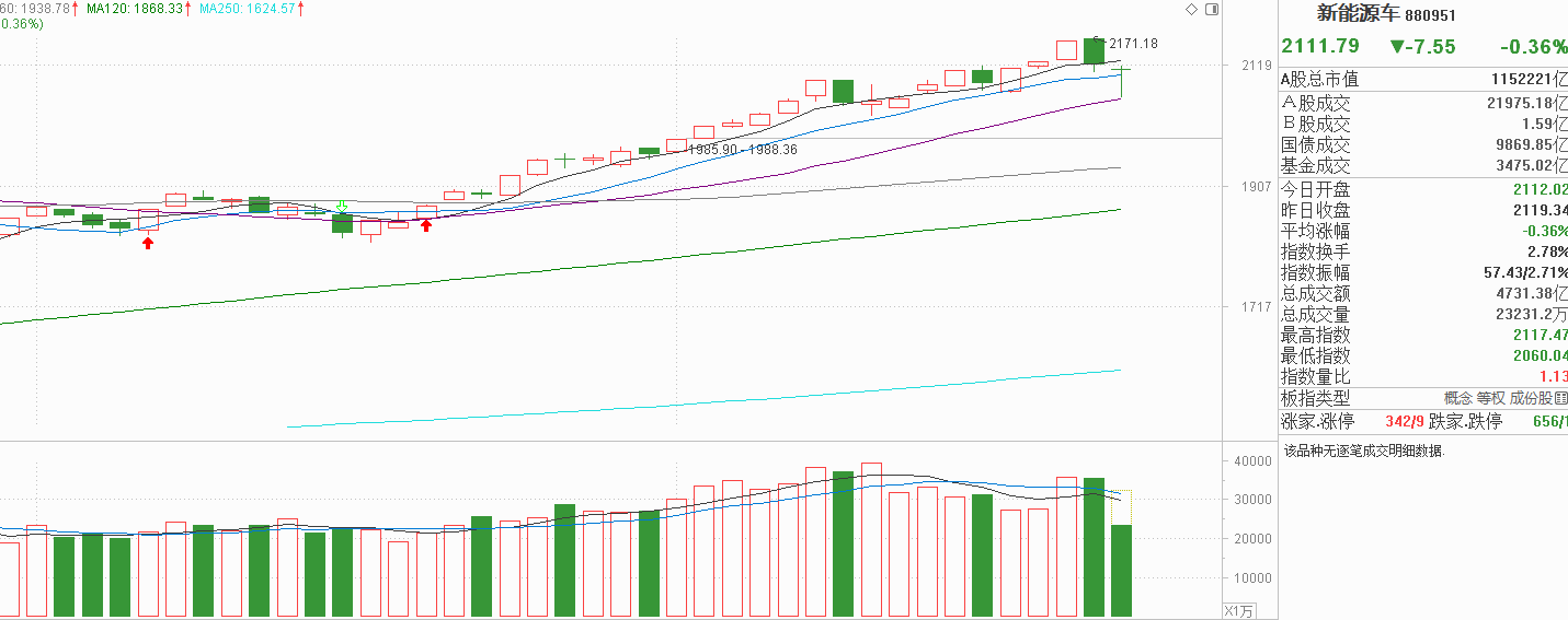 新能源车:冲高回落,5天线失守危机!资金流出与市场深度寒意来袭
