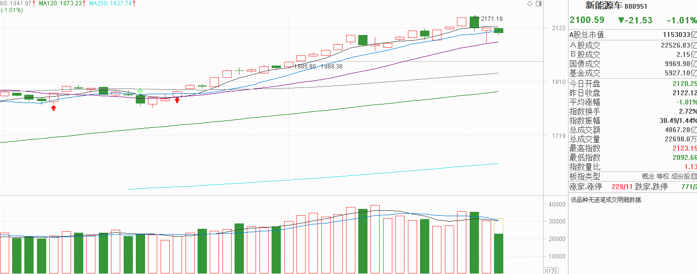 新能源车急刹车!长下影线后却失守5天均线?主力出货嫌疑转大