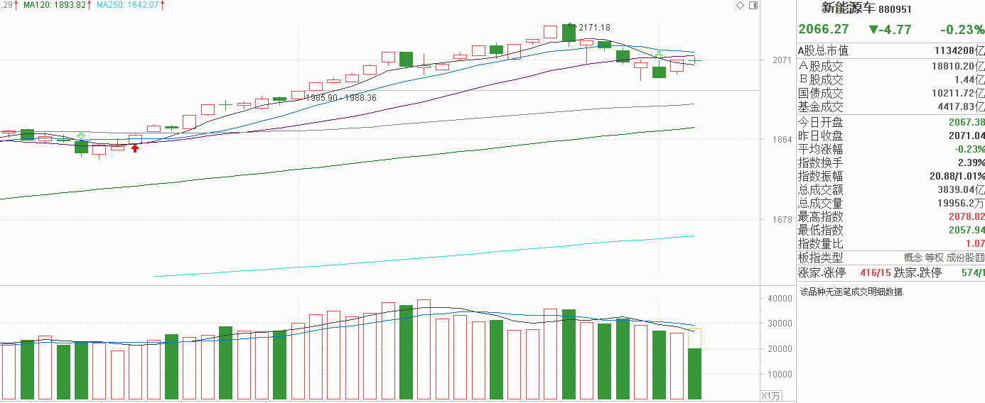 新能源车:冲高遇阻!周一低点成新箱体底?是终结还是横盘的开始?