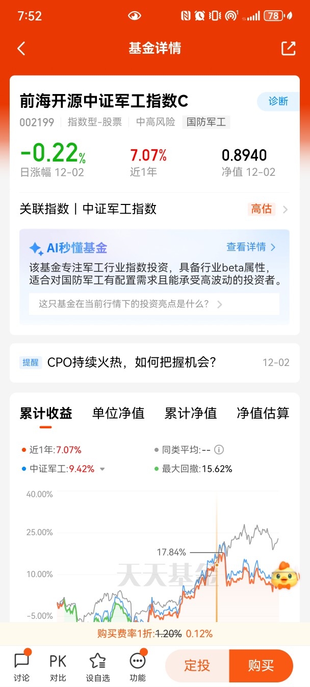 从投资逻辑看,三重核心驱动力支撑长期景气:政策端“十五五”规划强调国防现代化,国防预算连续三年稳增7.2%,航天强国、低空经济等赛道获政策加码;基本面已现明确拐点,2025年三季度行业营收同比增长6.7%,终结连续五个季度下滑,进入“订单兑现+盈利改善”周期;外部需求上,全球地缘冲突推升军贸需求,我国高附加值装备出口量稳居全球第四,成为行业重要增量。此外,基金C类份额免申购费、持有满730天免赎回费,费率优势显著,适配中小投资者灵活布局。