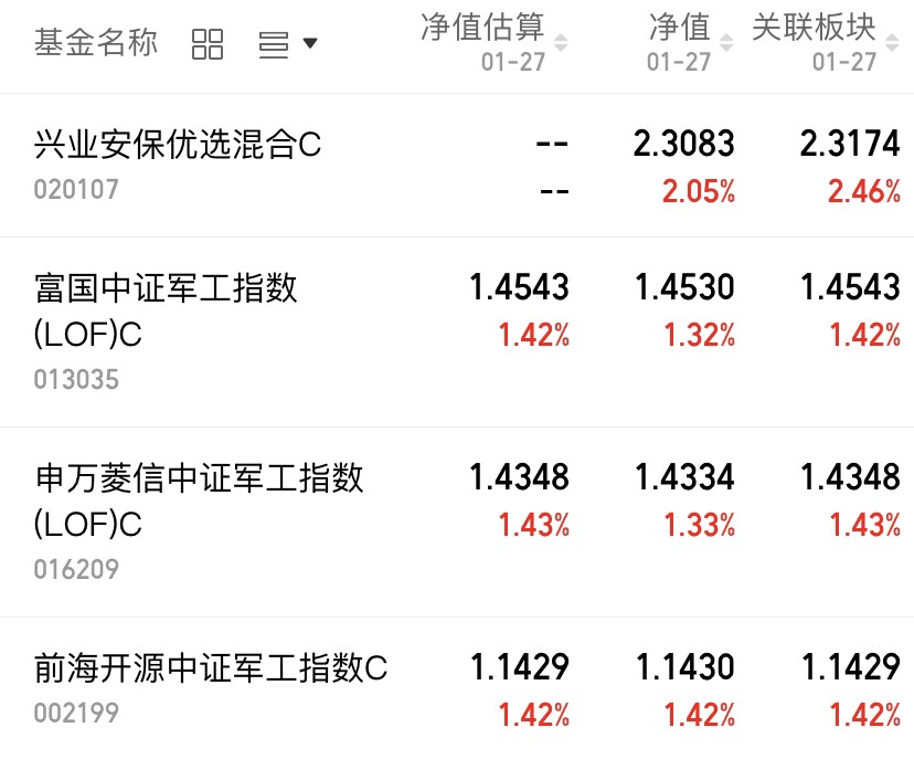 今天市场全程缩量,这其实就是场内资金在自救和调仓,资金还是围着前期的热点板块继续拉升,军工板块就是其中表现不错的一个,午后拉升。兴业安保优选上涨2.05%,$富国中证军工指数(LOF)C(OTCFUND|013035)$上涨1.32%,$申万菱信中证军工指数(LOF)C(OTCFUND|016209)$上涨1.33%。
