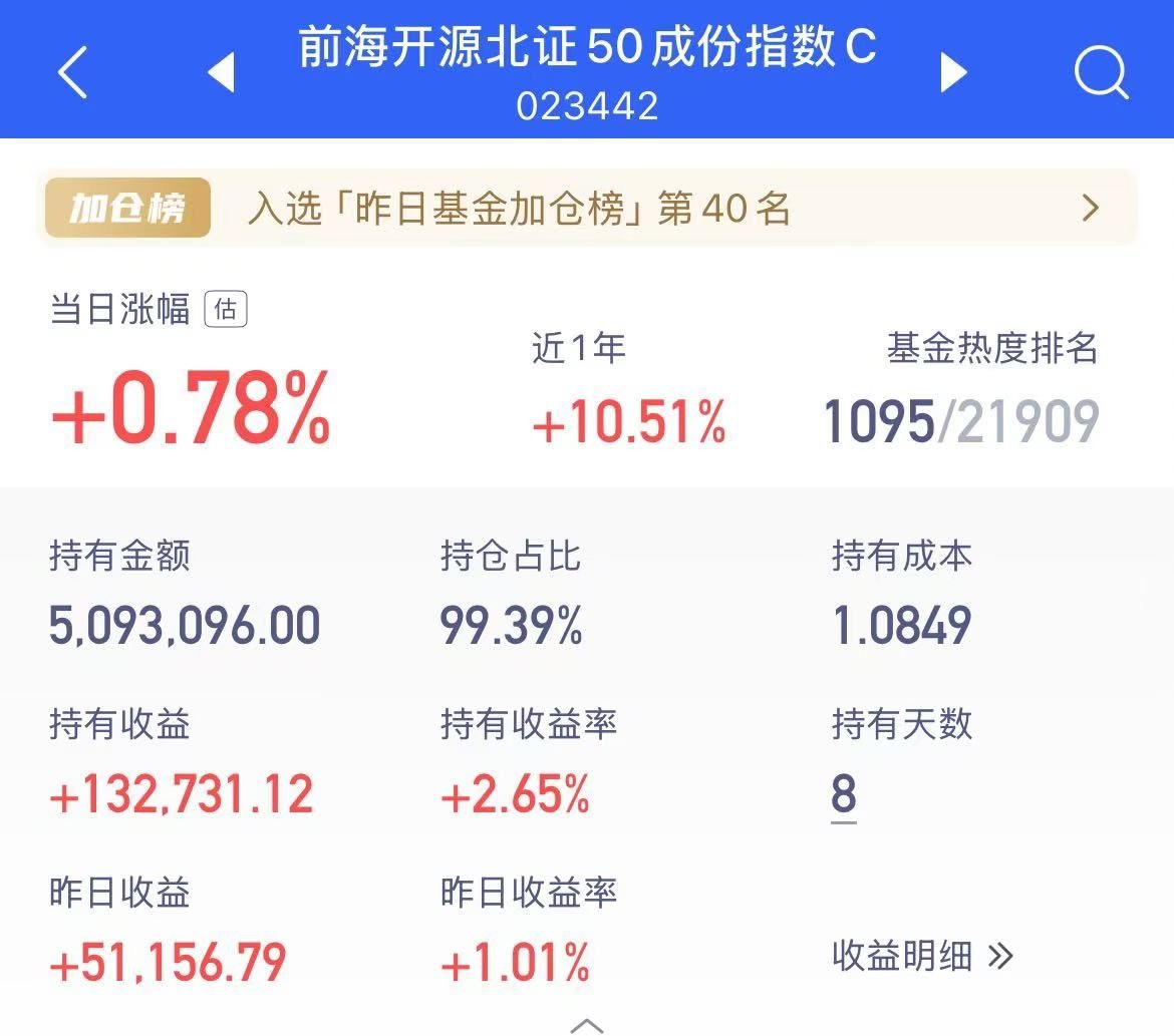 黄金和北证都继续加,看看谁涨的更快哈哈哈哈哈$前海开源北证50成份指数发起C$