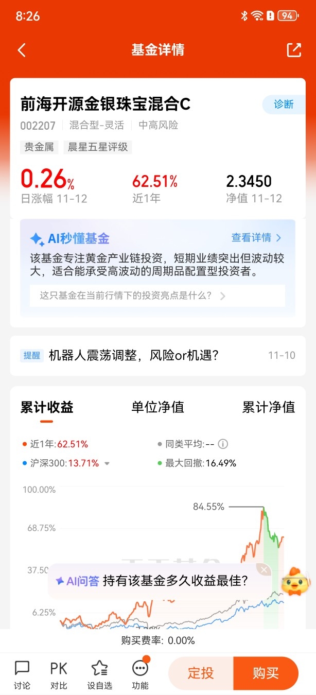 其二,严控仓位防风险。将该基金在资产组合中的占比控制在5%-15%,利用黄金与股债资产的低相关性对冲风险,避免单一资产波动冲击整体收益。