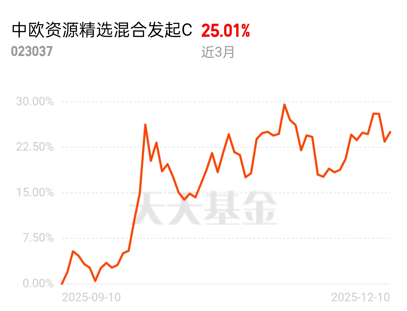全球金银铜价格近期集体走强,基金重仓的黄金、铜、钴资产迎来利好催化。中欧资源精选混合发起 C 近 3 个月 25.01%,同类基金里表现拔尖,短期布局能抓住这波上涨机会。