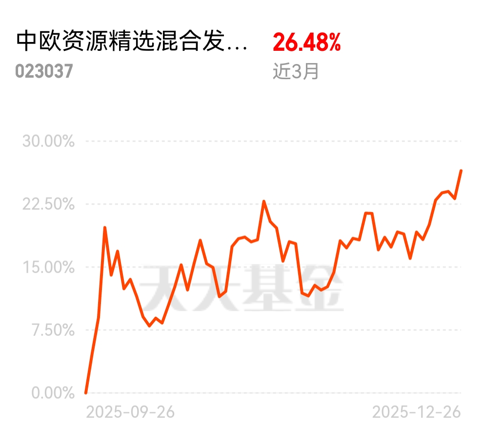 美联储持续降息 + 美元走弱,资源品价格涨势不停!中欧资源精选混合发起 C 近 3 月 26.48%,重仓铜、黄金等行业龙头,配置兼顾多环节,基金经理精准调仓,港股休市导致净值暂时低估。