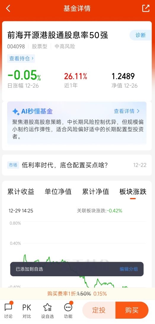 市场风格切换快,可以考虑用“矛+盾”的组合,科技股是“矛”负责进攻;波动较小的港股红利是“盾”来降低波动。比如这只股息率50强,精选港股高股息标的,是震荡市的“避风港”,帮你保住收益。$前海开源港股通股息率50强$