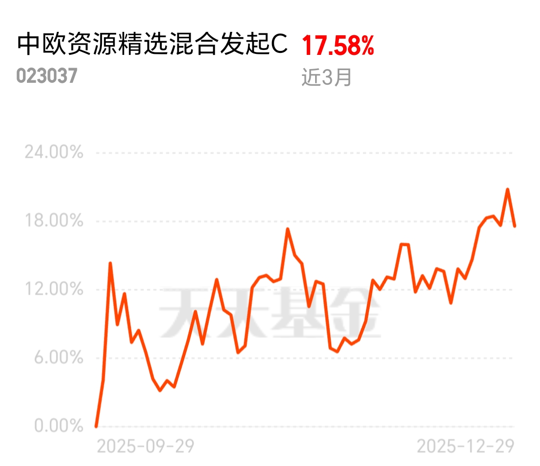 科技板块涨跌不定,周期资源却靠着资金青睐和供需支撑一路稳健。中欧资源精选混合发起 C 近 3 月 17.58%,聚焦核心资源龙头,铝、铜产业链配置占比高,短期业绩弹性明确,长期也靠谱。$中欧资源精选混合发起C$