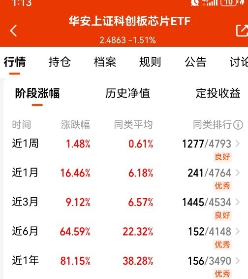 $华安上证科创板芯片ETF发起式联接A$含国产替代核心公司,半导体含量高,近一年
