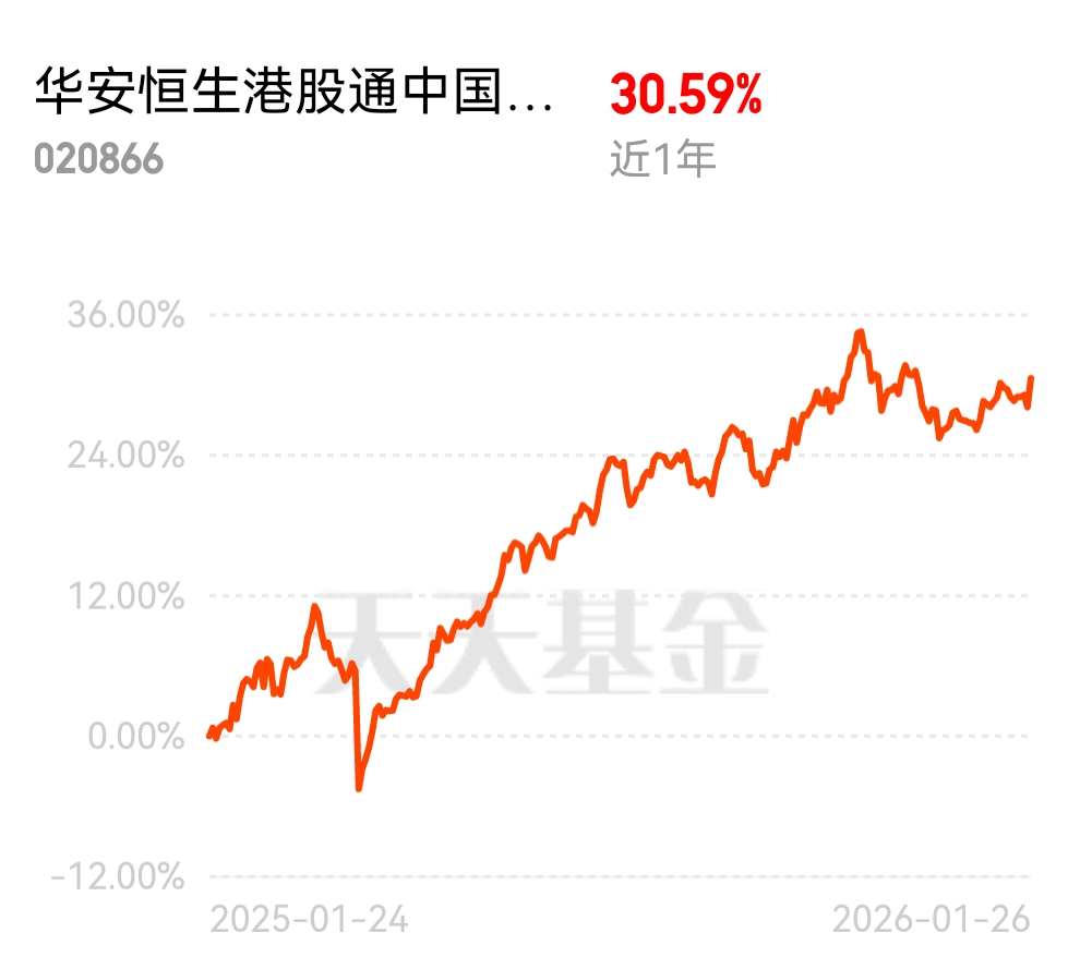 $华安恒生港股通中国央企红利ETF发起式联接A$ 再涨1.93%,近一年涨30.59%,港股红利高股息低估值,各期收益都领先